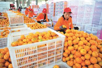 11月1日,湖北省宜昌市夷陵区星翔农产品专业合作联社社员在包装柑橘。