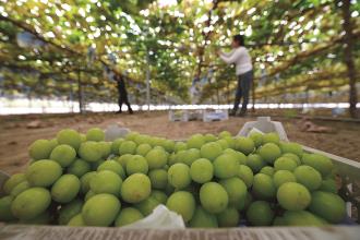11月2日,河北省唐山市丰南区大齐各庄镇的农民在果园里采摘葡萄。