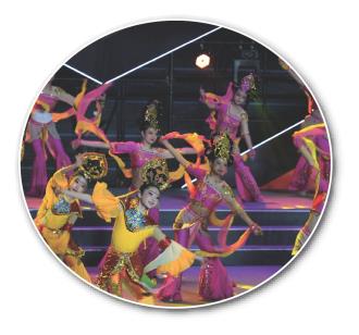 飞天伎乐、望之云表,霓裳胡旋、纵横腾踏,反弹琵琶、衣袂飘飘……《石窟舞乐》借鉴敦煌石窟壁画中舞姿形象,创造性地“复活壁画中的乐舞艺术”,成就了一种具有敦煌壁画舞姿形态与唐代舞风的舞蹈语言,给观众带来了一段极具美学张力的舞蹈盛宴。