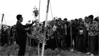 培训现场,果农们展现出极高的学习热情,他们认真聆听着果业技术人员的讲解。在现场示范环节时,果农们更是将果业技术专家团团围住,认真观看技术人员的修剪手法,并时不时就自家果园问题询问交流。