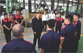 7月7日至8日,中共中央总书记、国家主席、中央军委主席习近平在山西考察。这是7日下午,习近平在阳泉阀门股份有限公司考察时,同企业员工亲切交流。 新华社记者 燕雁 摄