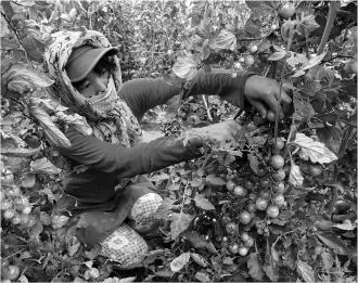 村民正在采摘圣女果。