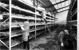 药农在中药材晾晒架旁作业