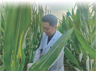 张旭东在基地为玉米授粉
