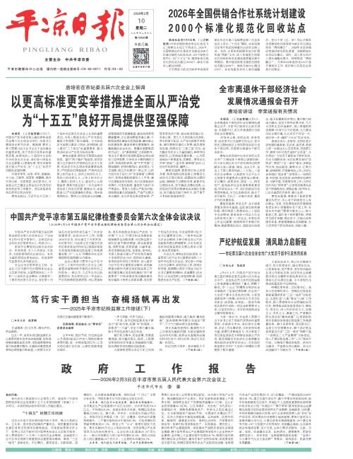 2025年,全市上下全面落实“四稳”部署要求,全力以赴促增长、稳大盘、保收官,较好完成市五届人大五次会议确定的目标任务。稳进向上的态势在持续。全市地区生产总值增长5.7%,规上工业增加值增长12.6%,固定资产投资增长0.9%,社会消费品零售总额增长6.8%,一般公共预算收入同口径增长6.2%,城乡居民人均可支配收入分别增长5.2%和7.1%。社会消费品零售总额、农村居民人均可支配收入增速分别居全省第2位和第3位。夯基向远的支撑在强化。争取各类财政资金300.5亿元,新增政府专项债券额度63.4亿元,实施500万元以上项目632项。平凉机场高速、灵华高速二期全面开工,崆峒水库除险加固工程和后峡、龙泉水库开工建设,全市基础设施投资增长92.3%。华煤集团千万吨智能洗选厂建成投产,安家庄煤矿开工建设,唐家河煤矿即将全面开工,新柏煤矿改扩建和周寨南煤矿核准批复,20户工业企业达产入规。红峰公司入选省级制造业单项冠军企业。探明冶镁白云岩资源7亿吨,开发条件趋于成熟。发布实施静宁苹果产业、产品、市场布局3个中长期规划,牛饲养量、苹果产量稳步提升,牛果产业对一产的贡献率提高到77.3%。提质向新的引擎在集成。加力扩围实施消费品以旧换新,争取补贴2.02亿元,市县两级筹措资金4000多万元,引导企业让利2500多万元,开展促消费活动千余场次,惠民生与促消费协同增效。成功举办中国苹果产销峰会、海峡两岸西王母文化交流、崆峒武术大会、半程马拉松等活动赛事270场次,打出了“政策+活动”“节庆+促销”“赛事+平台”融合引流组合拳。兰洽会合同项目签约总额再创新高。全市新签约引进10亿元以上项目15项,省外招商引资到位资金增长28%。争先向优的成色在提升。我市入选全国文明城市创建地级城市提名名单,华亭市、静宁县入选县级城市提名名单,崇信县成功创建全国文明城市。成功申报美丽蓝天、美丽河湖项目,泾川县获评国家生态文明建设示范区。静宁工业园区跻身省级高新技术产业开发区。庄浪县连续两年在全国160个国家乡村振兴重点帮扶县发展成效监测评价中排名首位。银河证券帮扶静宁县苹果产业经验入选全球最佳减贫案例。“高效办成一件事”被国家标准委列为标准化试点项目。在全省率先建成“扫码入企”涉企行政检查全过程监督平台。2025年度城市信用综合监测平均指数居全国地级市第2位。托底向好的基础在加固。群众身边不正之风和腐败问题集中整治、化解矛盾风险维护社会稳定专项治理深入推进,医疗卫生系统、食品药品安全、校园安全专项整治行动取得实效,中央巡视交办等信访事项妥善化解,“校园餐”、农村集体“三资”管理、殡葬、医保基金管理、招标投标等领域突出问题得到有效治理。全力组织开展抗旱减灾,落实落细森林草原防灭火、防汛减灾各项措施,有力保障了群众生命财产安全。