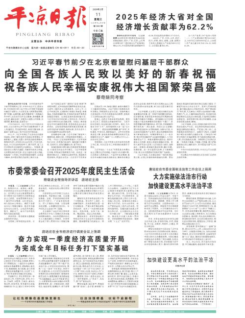 新华社北京2月10日电 中华民族传统节日春节即将到来之际,中共中央总书记、国家主席、中央军委主席习近平在北京考察并看望慰问基层干部群众,向全国各族人民和香港同胞、澳门同胞、台湾同胞、海外侨胞拜年!祝愿海内外中华儿女在农历马年龙马精神、身体健康、事业有成、阖家幸福!祝愿伟大祖国山河锦绣、风调雨顺、繁荣昌盛、国泰民安!