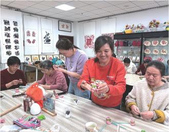 活动现场暖意融融,麦香四溢。在面塑班老师的悉心指导下,学员们充分发挥想象力和动手能力,将揉制光滑的面团搓、捏、揉、卷,娴熟运用面塑技艺,一步步勾勒出福袋和鱼的轮廓。有的学员专注捏制福袋的褶皱,使袋口纹路清晰、形态饱满;有的学员细致雕琢鱼的鳞片和尾巴,让鱼儿栩栩如生、灵动鲜活。大家相互交流技巧、分享经验,遇到疑问及时向老师请教,现场氛围热烈温馨,每一个动作都饱含着对生活的热爱,每一个细节都彰显着匠心巧思。