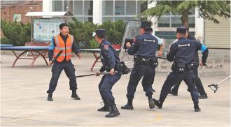 实战演练环节直面薄弱环节,不掩饰问题。针对部分班级疏散路线不清、个别安保人员防暴器械使用不熟练等情况,特巡警队员进行了现场示范和手把手教学——从钢叉的握持角度到盾牌的防御站位,逐一讲解要领。“钢叉要锁住对方腰部,不是乱捅!”“疏散时老师要站在楼梯拐角,防止踩踏!”经过反复操练,全校师生的应急反应速度明显提升,从最初的略显忙乱到有序撤离、协同防御,演练真正实现了“以演促练、以练筑防”。