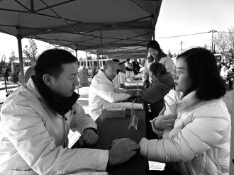 广场四周,文化惠民、农技辅导、健康体检、专家义诊等服务台在文化广场上一字排开,热情高涨的乡亲们把服务区域挤得水泄不通。“老人家,您要定期测量血压,按时服用降压药。”在义诊服务台前,群众有序地排队等候检查,医生们一一详细问诊,不时传来欢笑声和感谢声。