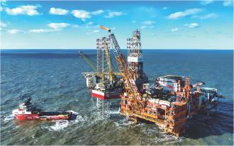 这是2025年2月8日拍摄的渤中26-6油田一期开发项目海上作业平台(无人机照片) 新华社发(杜鹏辉 摄)