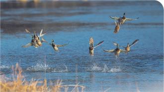 崇信县林木病虫害防治工作站站长杜宇亮说:“灵活运用高空摄像头、无人机巡查、望远镜观测等人性化监测方式,全力护航候鸟安全迁徙。目前,我县水库、湿地及成片林区已成为黑鹳、赤麻鸭、绿头鸭、豆雁等多种候鸟的重要停歇点。”