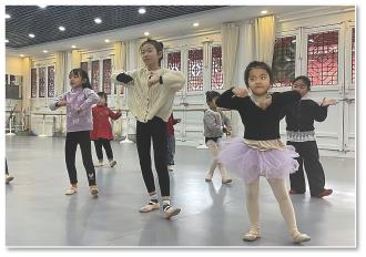 隔壁舞蹈室中,节奏感十足的音乐响起,孩子们身着练功服从最基础的热身、压腿、拉伸开始。舞蹈老师朱玥凡一边给孩子作示范一边讲解。在市文化馆执教3年的朱玥凡说:“这些孩子都是零基础入门,平均年龄8岁,我们会从最简单的基本功开始教起,让孩子塑造好形体后,通过趣味化学习感受舞蹈的魅力,短短几天我们班的孩子已经能完整跳出简单的舞蹈片段了。”