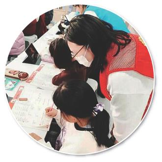志愿者给孩子辅导作业